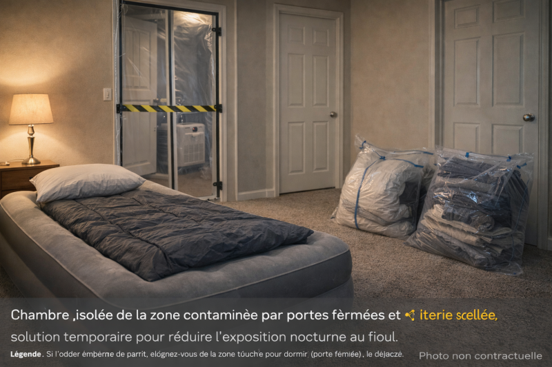 Si vous n’avez pas d’alternative, dormez loin de la zone, confinez strictement et évitez de déplacer literie et vêtements : les textiles fixent rapidement les COV.