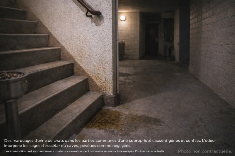 odeur d’urine de chats dans les parties communes (escaliers, paliers, couloirs, caves, locaux techniques) d’un immeuble est source de gêne, de plaintes répétées et de conflits entre occupants.